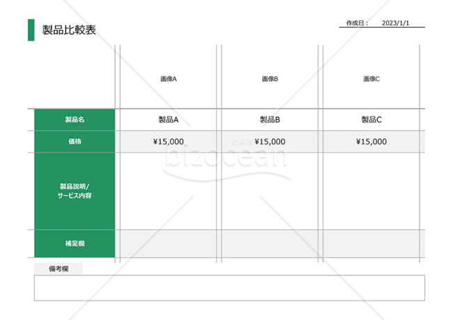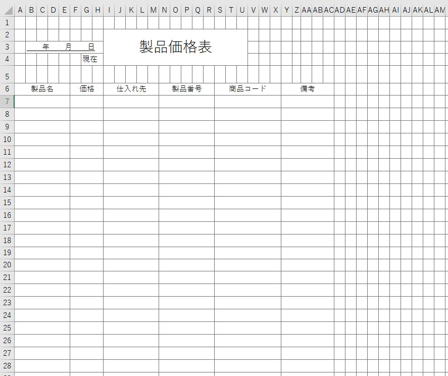 製品価格表のテンプレートをエクセル形式で無料ダウンロードテンプレボール。