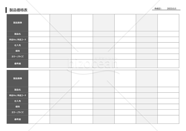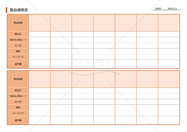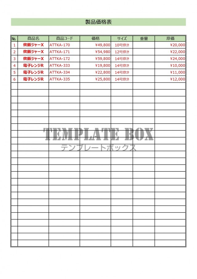 シンプルで見やすい製品価格一覧表「Excel・Word・PDF」社内共有や商品管理に使えるフォーマット無料テンプレートTemplateBox。