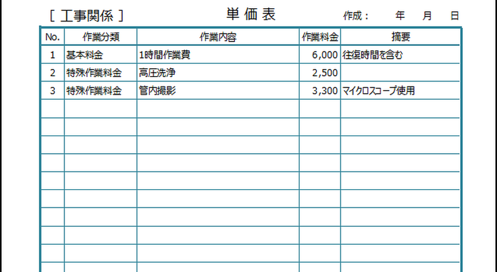 単価表商品と工事向け・無料のExcelテンプレートをダウンロードExcel・Word基礎講座とテンプレート。