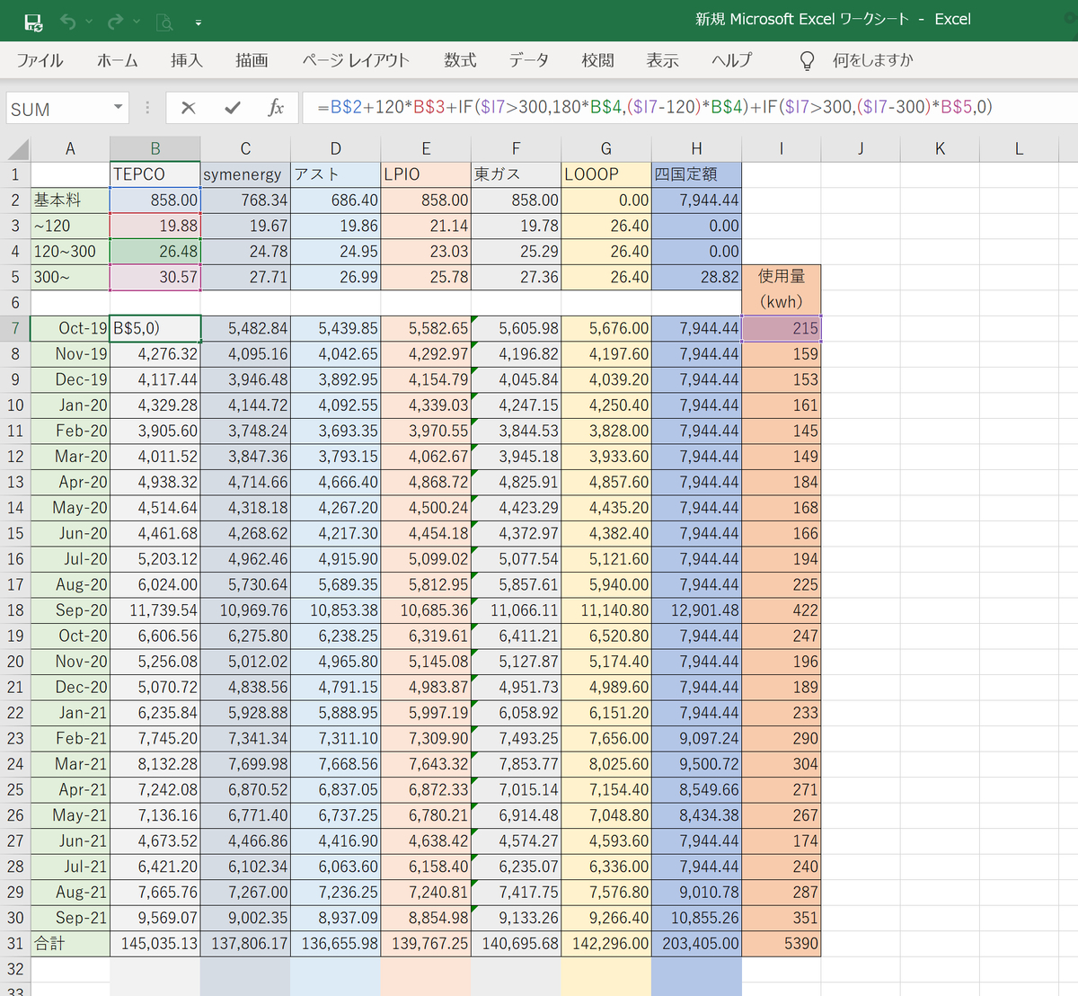 電力会社の乗り換え試算をExcelでやってみた - 東通り自由帳。