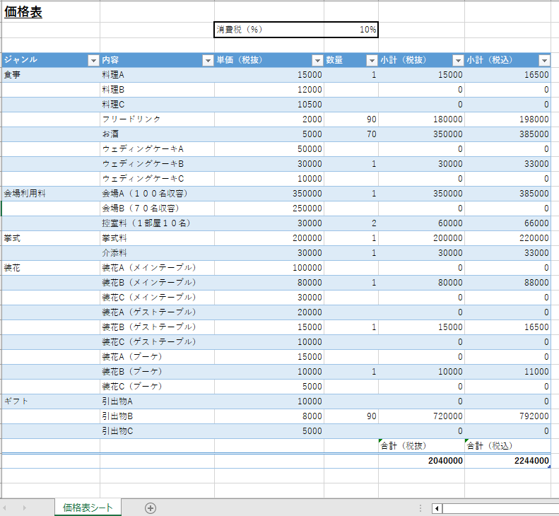 Excel計算表 作成します! Excelで料金表を作成する方法関数。
