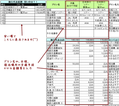 無料配信Excelテンプレート Excel旅行代金比較表│ エクセルテンプレート 気ままに配信中♪ Byエクセルママ。