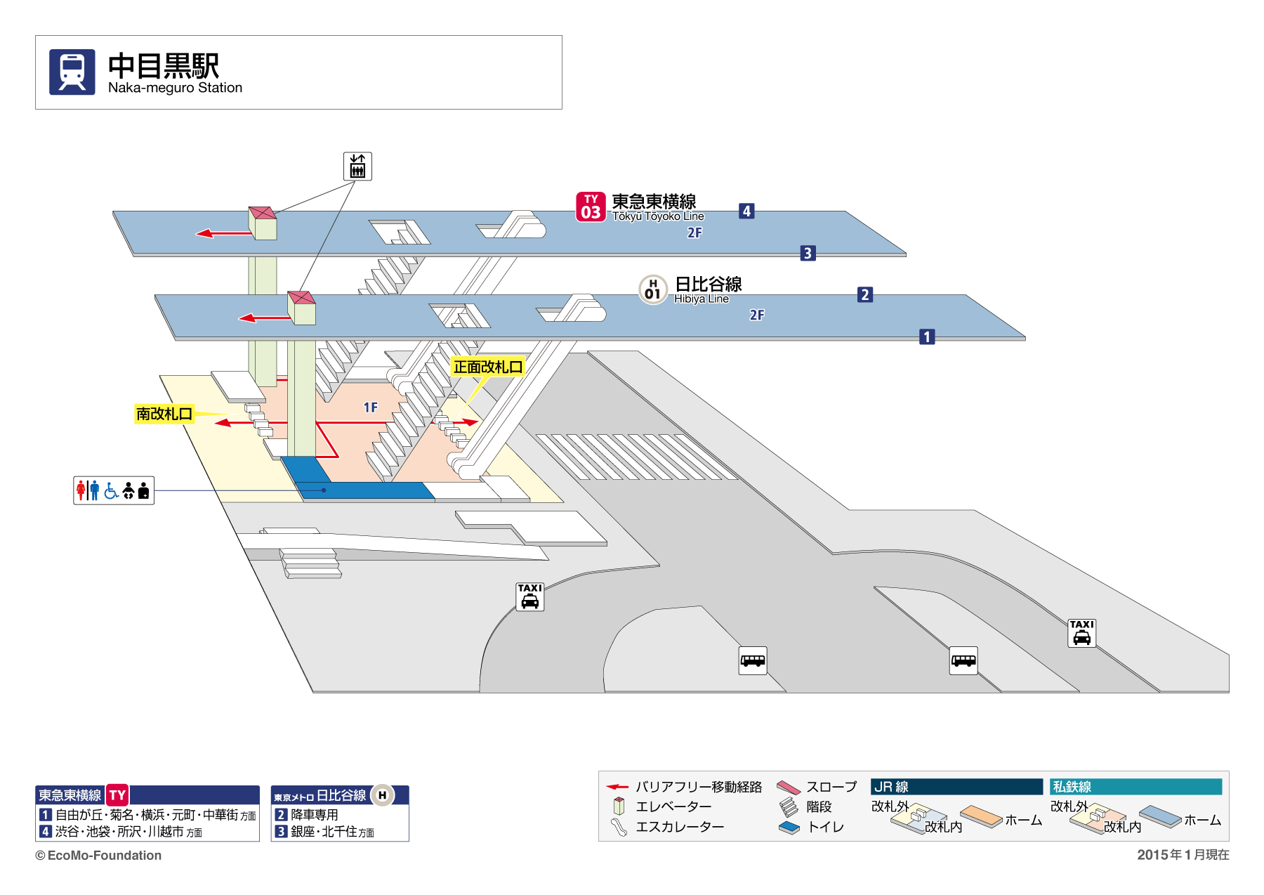 JR東日本:駅構内図・バリアフリー情報 目黒駅。