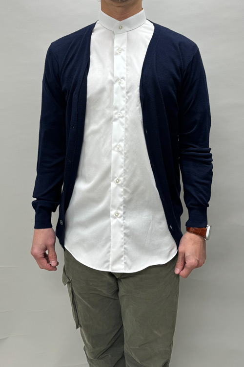 オフィスカジュアルの襟なしコーデとは?おすすめのノーカラーシャツ・バンドカラーシャツビジネス・オフィス・スマートカジュアル専門通販。