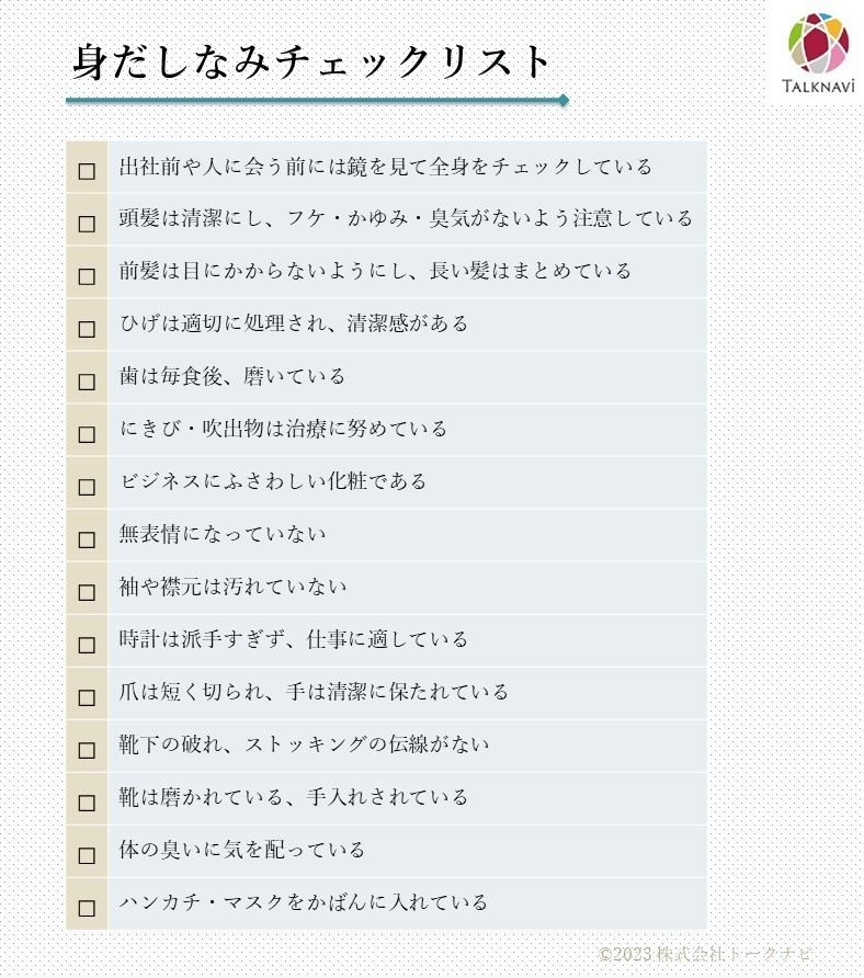 ビジネスマナー・身だしなみ編 ポイントを押さえたチェックリスト。