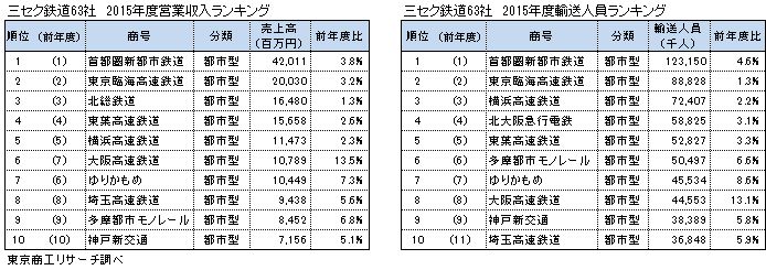 全国の三セク鉄道 売上高トップは 「つくばエクスプレス」 三セク鉄道の約9割が輸送人員増も、6割が経常赤字TSRデータインサイト東京商工リサーチ。