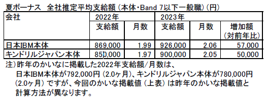 夏ボーナス回答出る バンド7以下一般職推定昨年を大幅に上回る 日本IBM平均1,155,000円 キンドリルジャパン平均1,046,000円 –JMITU日本アイビーエム支部。