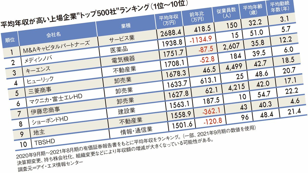 上場企業の年収、トップはM&Aキャピタルの2478万円 - 日本経済新聞。