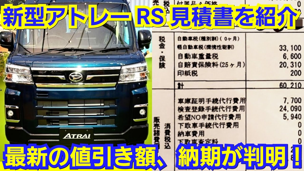 新型アトレー RS 見積書を紹介!最新の値引き額、納期が判明!これだけは、必須のオプションを紹介!ハイゼットカーゴよりお買い得。