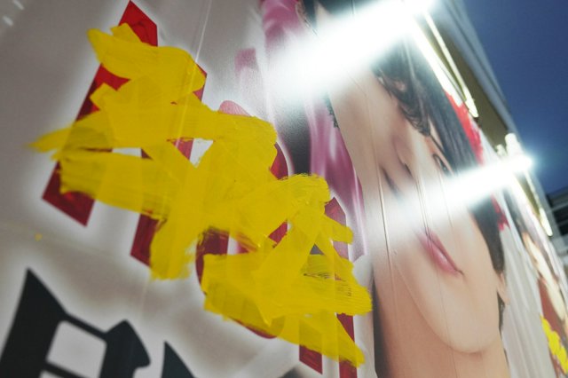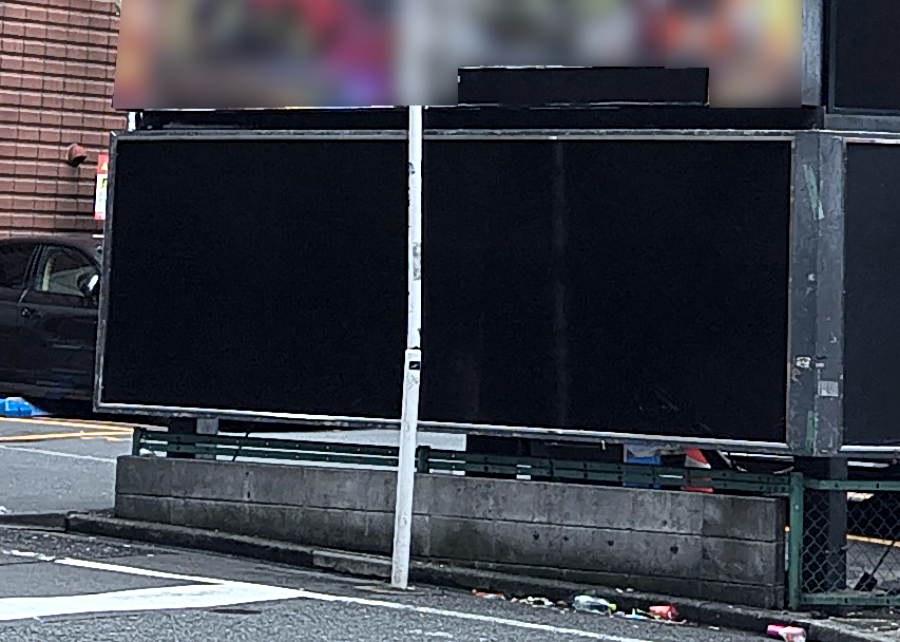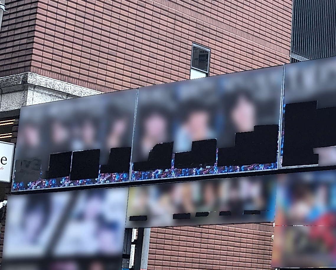風営法改正で黒塗りだらけとなった歌舞伎町のホスト看板。風営法改正ホスト看板。