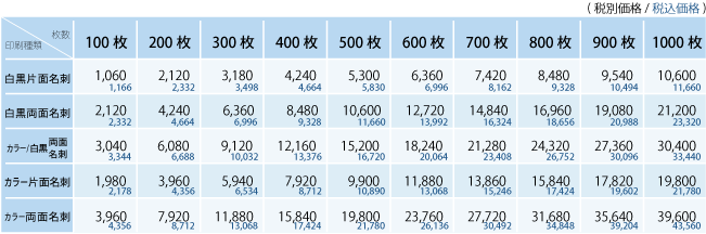 価格表・料金について名刺印刷専門ショップ 名刺本舗。