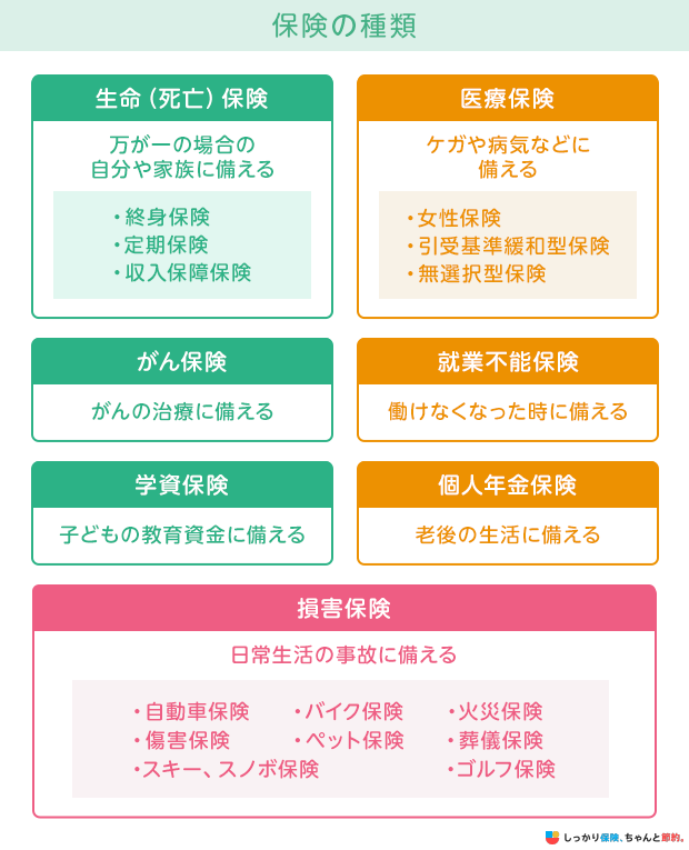 保険の種類とは?一覧と種類ごとの特徴をわかりやすく解説ほけんの窓口 公式保険比較・見直し・無料相談。