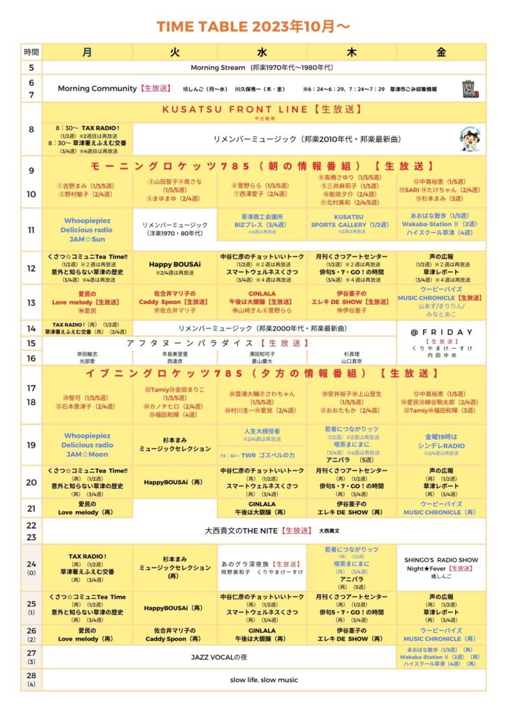 番組表 2023年10月改定版 が完成しました!えふえむ草津。