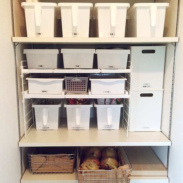 パントリーにおすすめ!100均とニトリで揃う収納ケース - RE -アールイ。