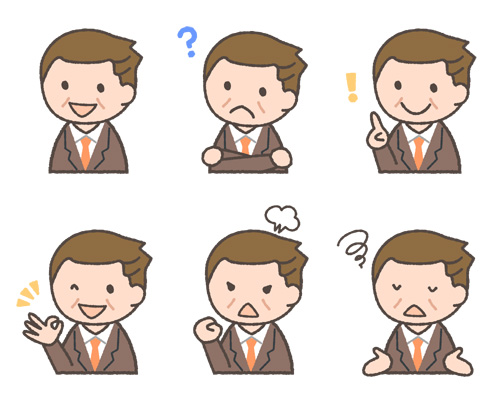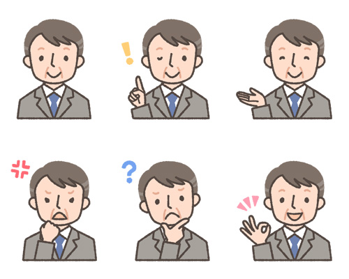 初老ビジネスマンの表情イラスト6種可愛い無料イラスト・人物素材 - フリーラ。