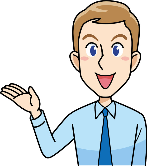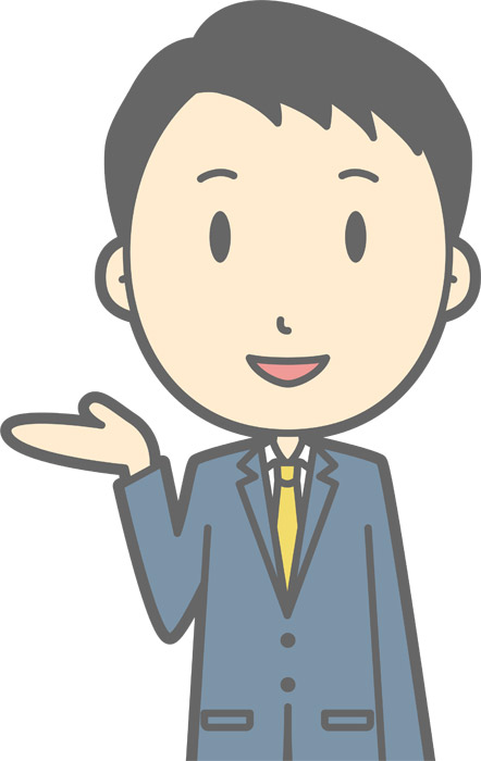 案内・紹介するビジネスパーソン 男性 のイラスト商用可・フリーイラスト素材ソコスト。