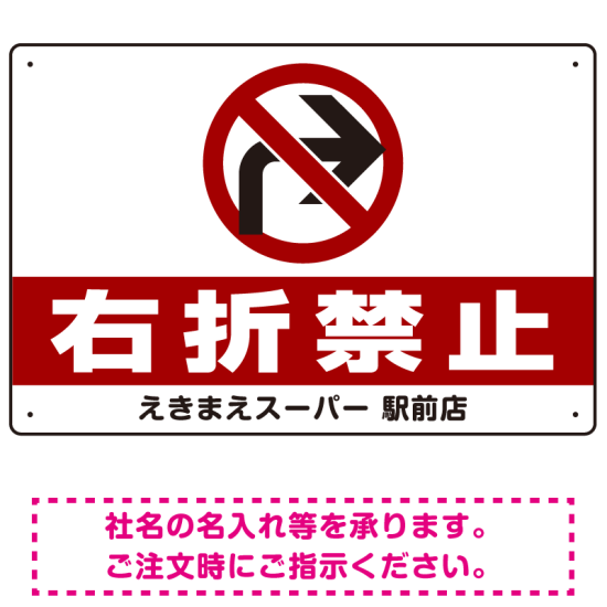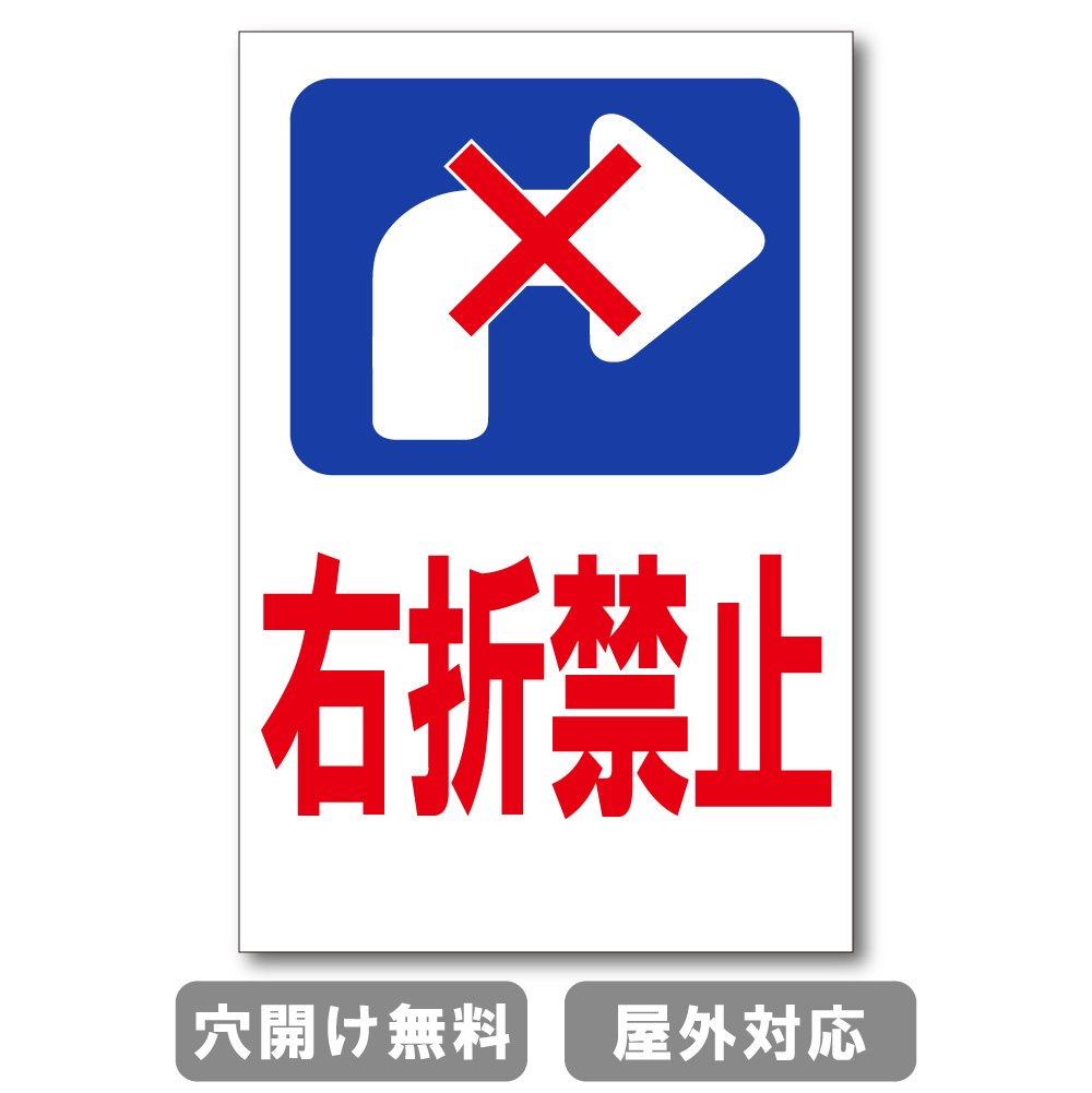 イラスト看板 表示板「右折禁止」大サイズ 90cm×60cm取付穴8ヶ所あり 表示板公式看板ショップ。