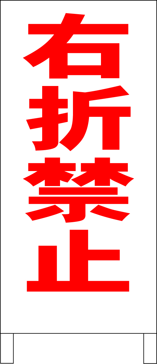 シンプル立看板「右折禁止 赤 」駐車場・最安・全長1m・書込可・屋外。