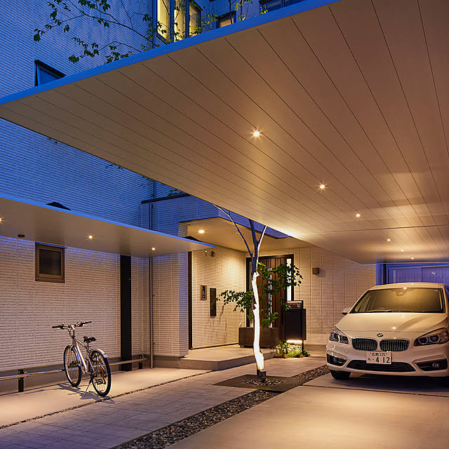 車2台分のカーポートと白塗りの可愛らしい門柱が印象的なお家。岡山県岡山市-外構・エクステリア専門店-庭研究所Azur。