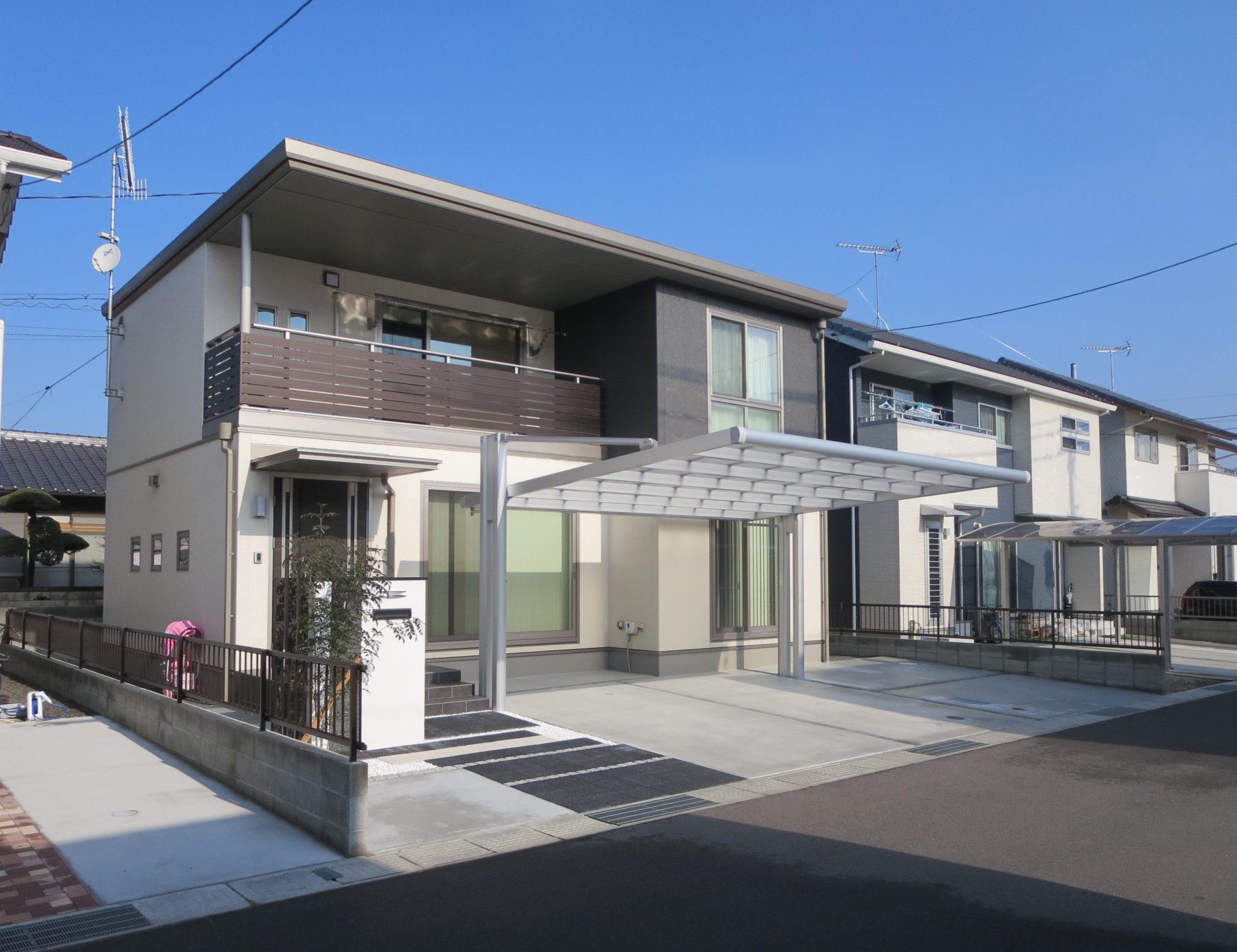 カーポートSC後方支持2台用の施工例、1台用の施工例、3台用の紹介浜松・磐田・袋井のエクステリアならハマニグリーンパーク。