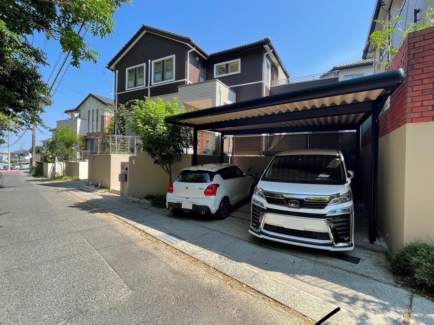 ブラックのカーポートSC2台用 外構工事 名古屋市昭和区愛知県名古屋市の外構・エクステリア・リフォーム専門店パートナーホーム外構・新築外構 ・リフォーム工事年間800件以上の施工実績でおしゃれな人気の外構・新築外構・リフォームプランをご提案します。