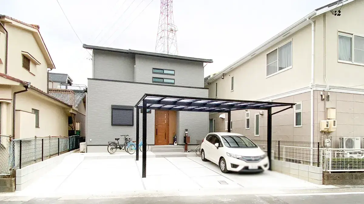 LIXIL人気商品≪カーポートSC≫2台用 新築外構施工事例村島硝子商事株式会社 奈良県橿原市 卸し 工事 エクステリア リフォーム 不動産。