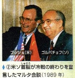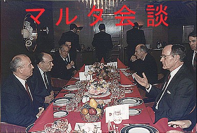 1989年 - ジョージ・H・W・ブッシュ米国大統領とミハイル・ゴルバチョフソ連最高会議幹部会議長兼ソ連共産党書記長がマルタ 島で会談し、冷戦の終結を宣言。 マルタ会談草莽崛起ーPRIDE OF JAPAN。