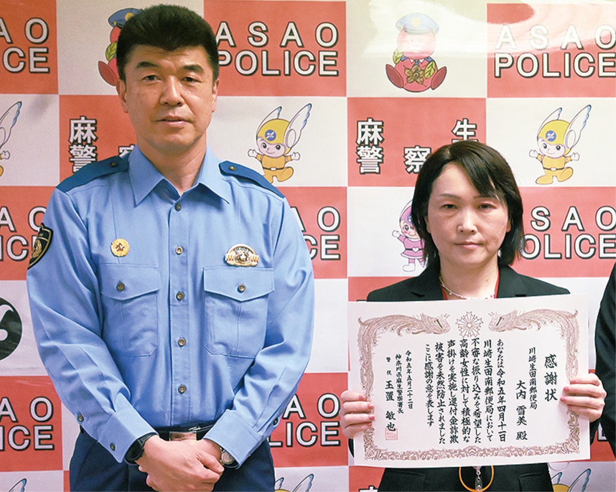 麻生警察署 詐欺被害防止に感謝状 生田南郵便局・大内さんへ麻生区タウンニュース。