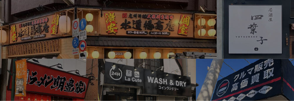 施工事例一覧 看板の種類が 「突出し看板 袖看板 」の看板 WORKS。