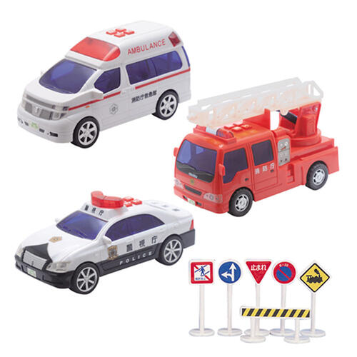 ミニサウンド 緊急車両セット 3台セット フリクション走行 パトライト パトカー 救急車 消防車 標識セット付 トイザらス限定おもちゃ通販のトイザらス オンラインストア。