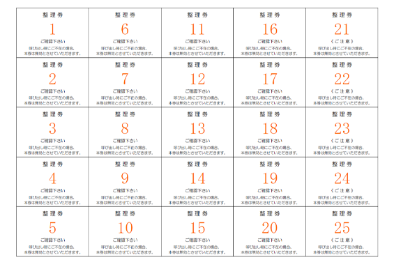 番号札:名刺サイズと1 4サイズ・Excelで自動表示 - 登録不要のフリーテンプレート。