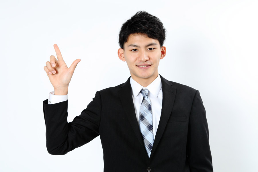 上を指差すスーツ姿の男性 11038000986 の写真・イラスト素材アマナイメージズ。