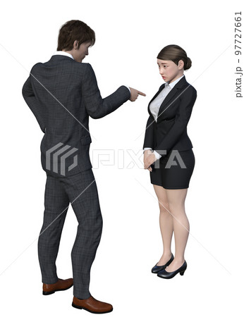 上司に叱られ頭を抱えるビジネスマン男性と指差しで怒る上司 3Dモデルの全身正面と横顔のイラストのイラスト素材97856944- PIXTA。