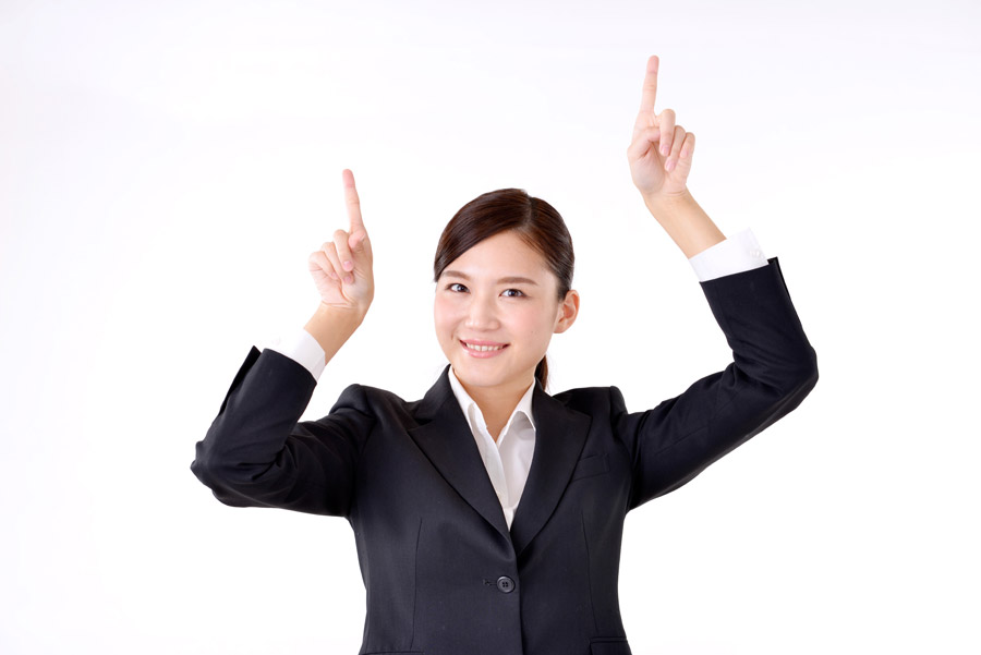 上を指差す三人のOLの写真素材FYI01877070ストックフォトの Qlean Market キュリンマーケット。