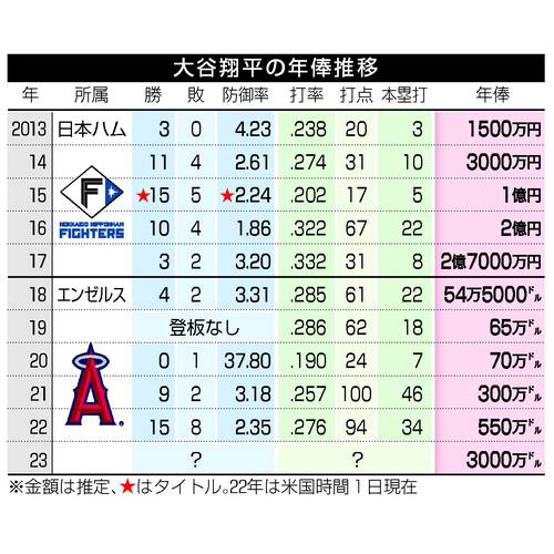 大谷翔平、来季年俸は2・9億円? ドジャースと契約総額1015億円のうち97%を後払いに - MLB : 日刊スポーツ。