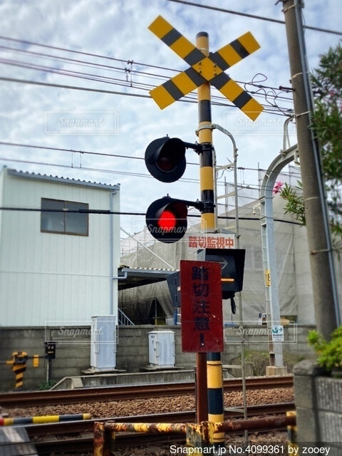 踏切の遮断機の写真・画像素材-Snapmart スナップマート。