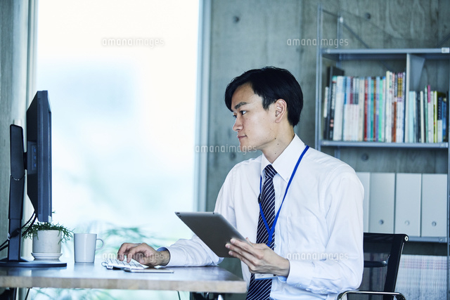 20代男性のオフィスワーク風景 10626004568 の写真・イラスト素材アマナイメージズ。