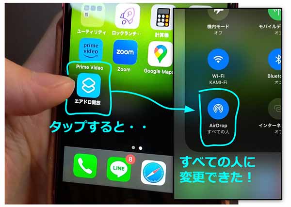 iPhone AirDropを一瞬ですべての人に開放するテクニック。
