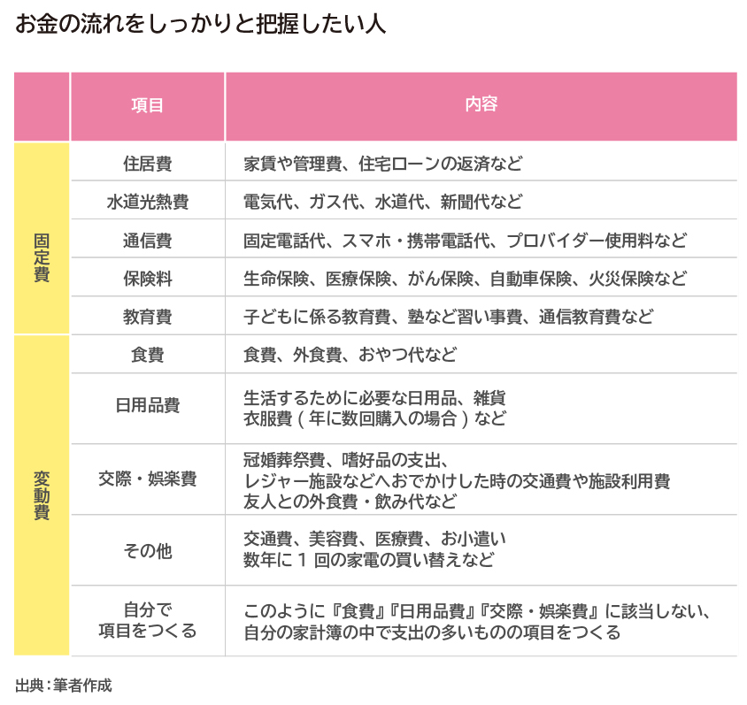 家計簿の項目を一覧とは?支出項目の決め方や管理方法を解説 - ワンバンクマガジン。