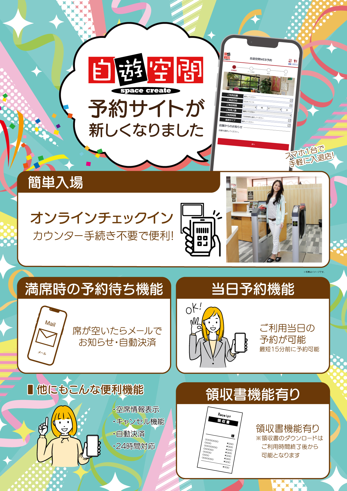 席のご予約スペースクリエイト自遊空間。