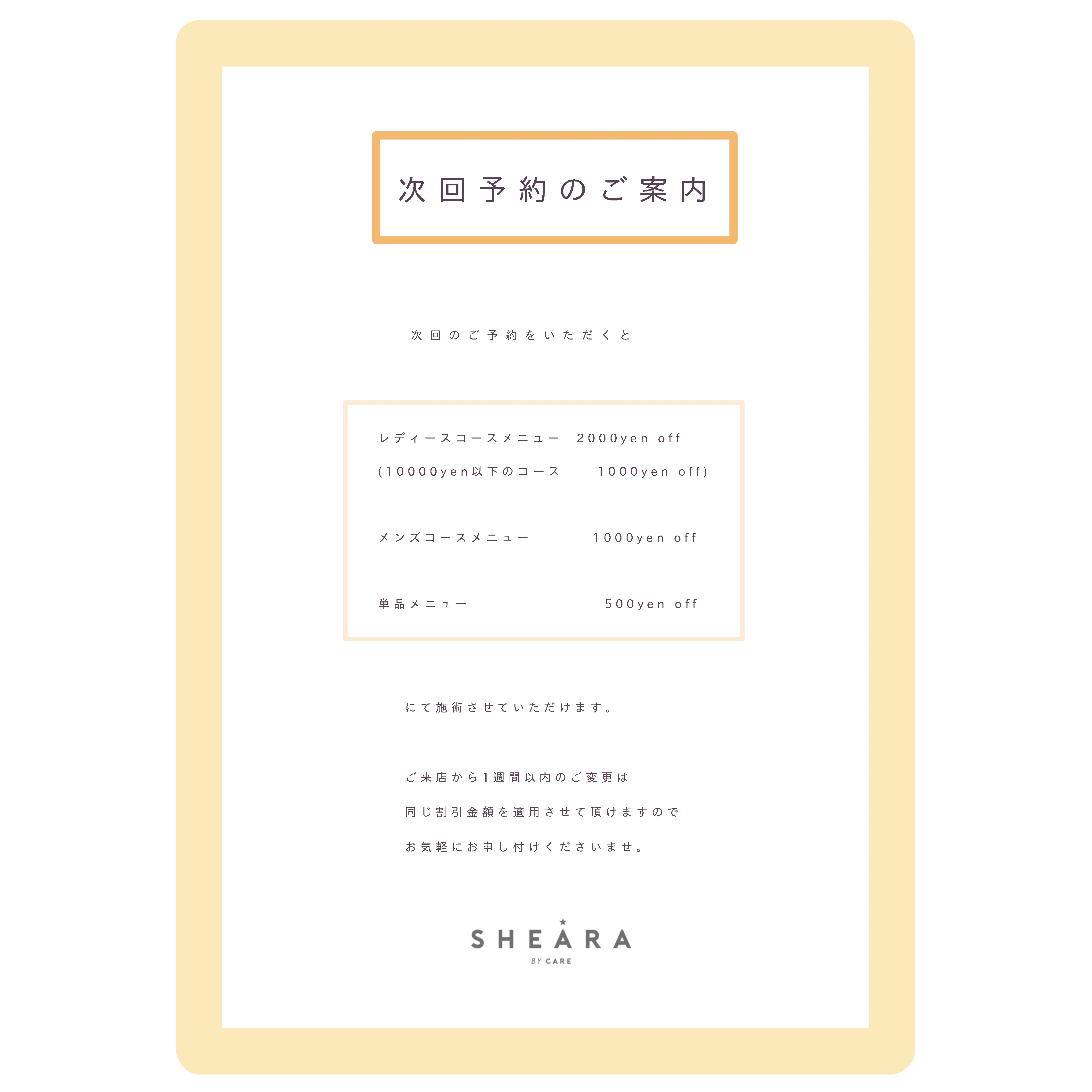 次回予約のご案内SHEARA BY CARE。