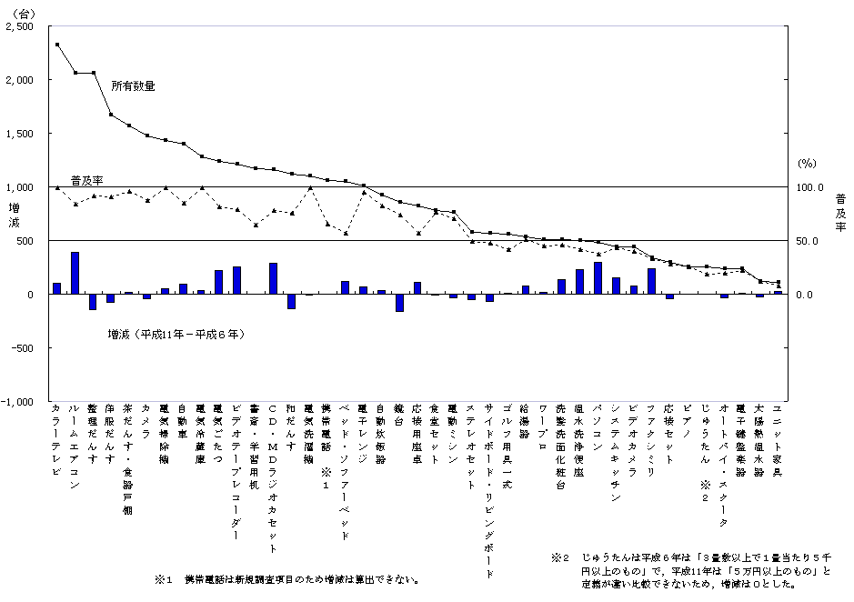 統計局ホームページ 日本の統計-46 主要耐久消費財の普及率 一般世帯。