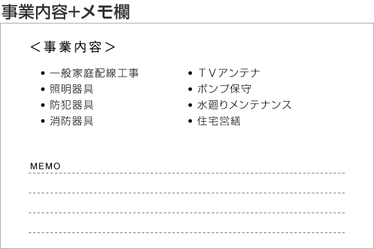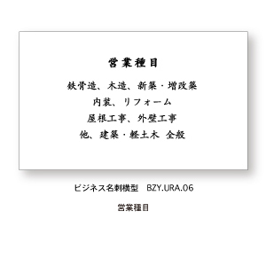 名刺 裏面用オプション 営業品目。