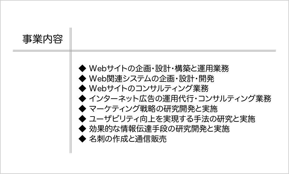 業務内容表示裏面ビジネス名刺名刺図鑑。