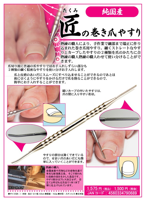 巻き爪用やすり 巻き爪専用ヤスリ まきづめヤスリ 純国産 匠の巻き爪やすり 純国産巻き爪やすり 爪切り 巻き爪 やすり 爪やすり ステンレス :アイデアグッズのララフェスタ - 通販 - Yahoo!ショッピング。