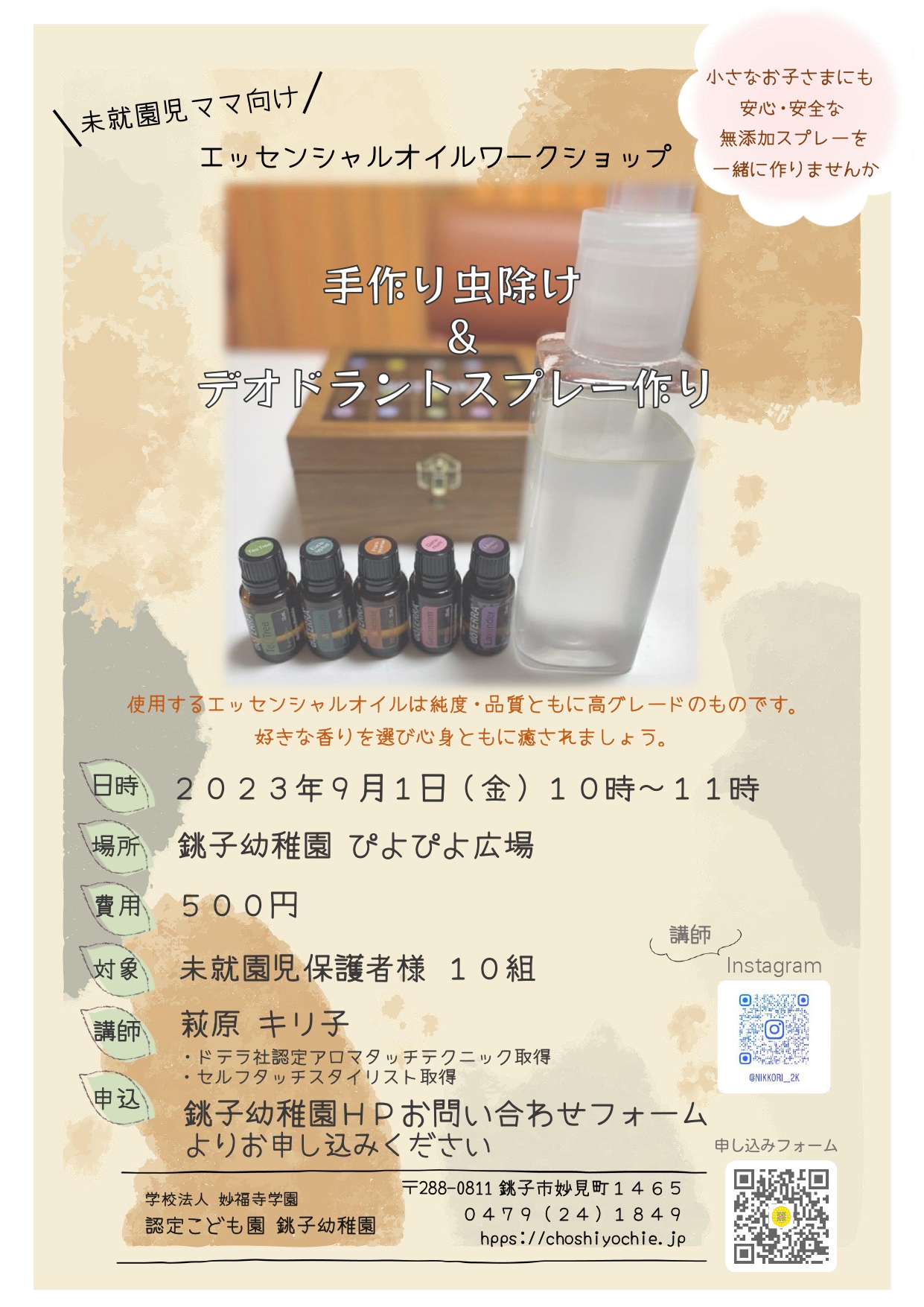 9 1 金 未就園児保護者様向けエッセンシャルオイルワークショップ開催のお知らせ学校法人妙福寺学園 認定こども園 銚子幼稚園。