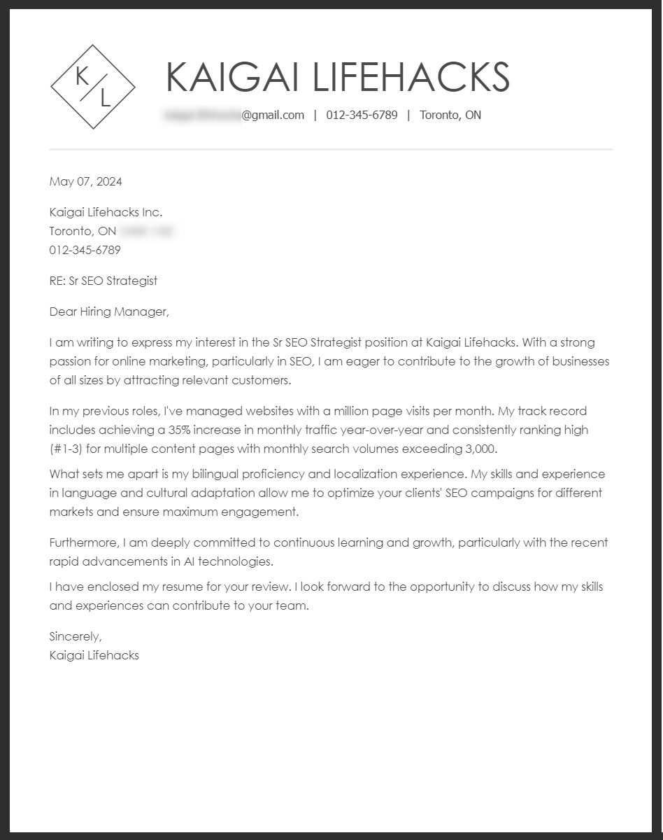 カナダで仕事探し〜どんなカバーレター cover letter を書いたのか〜 - 実験人生。