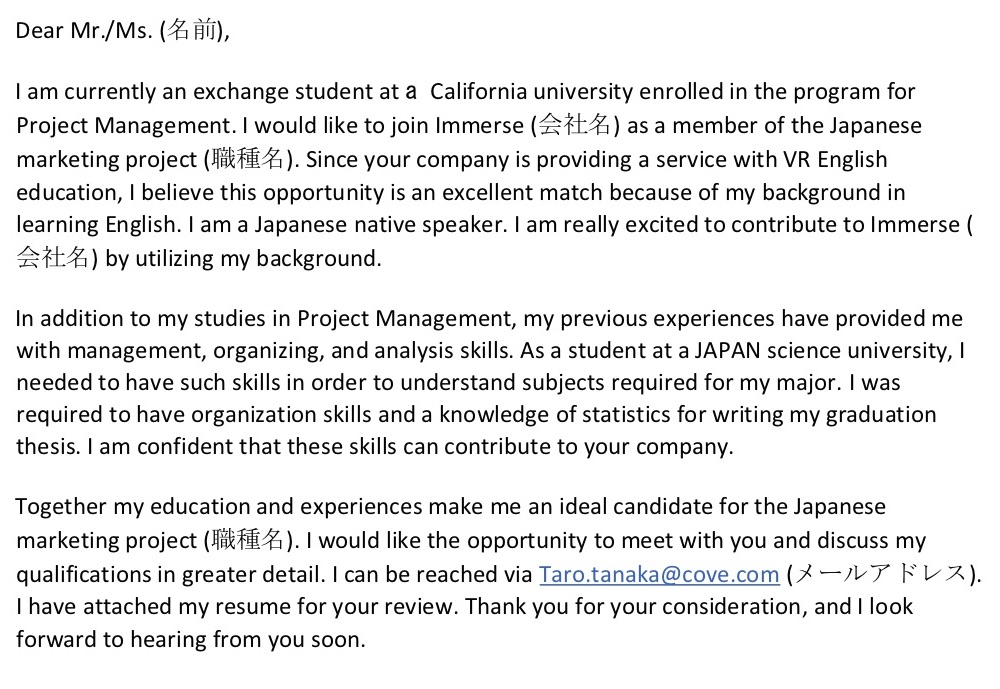 海外就職者必見! 英語でカバーレターを書きたいあなたへイマースラボ。