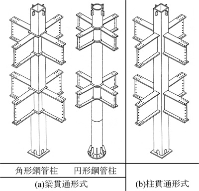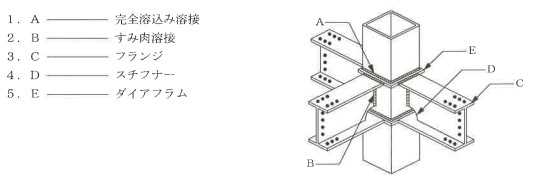 角形鋼管とH形鋼のフラットな柱梁仕口の紹介です。