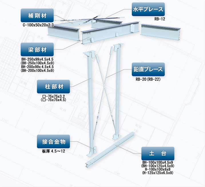 鉄骨システム RDJノンブラケット工法– RDJ工法 小規模システム建築。